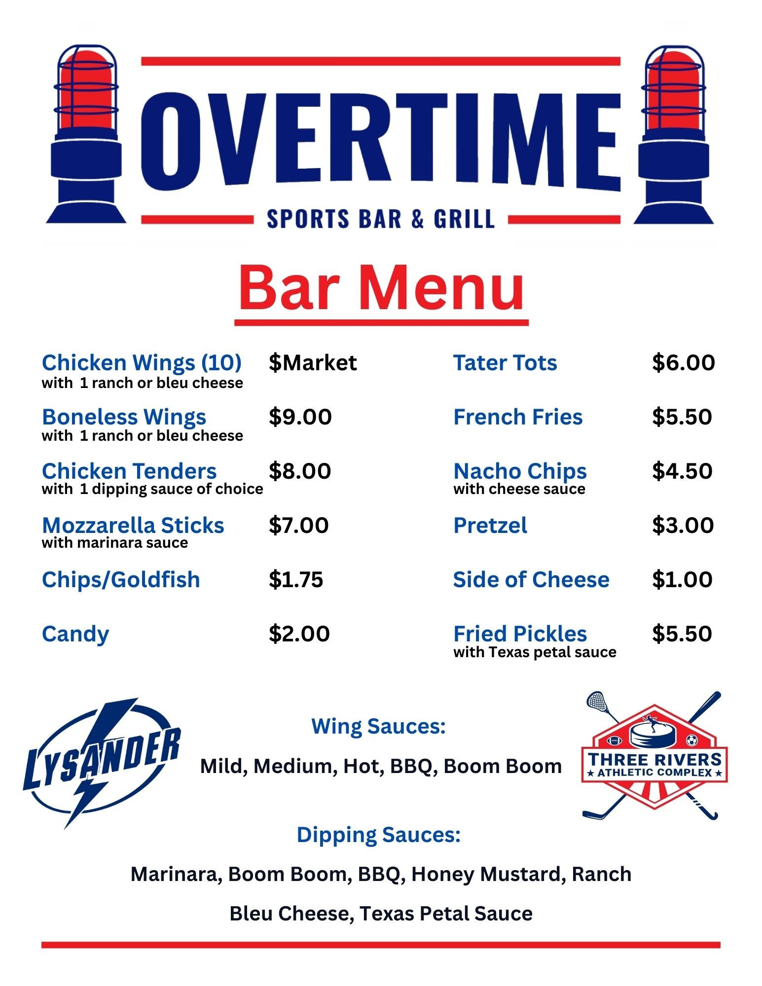 Overtime Sports Bar & Grill Menu