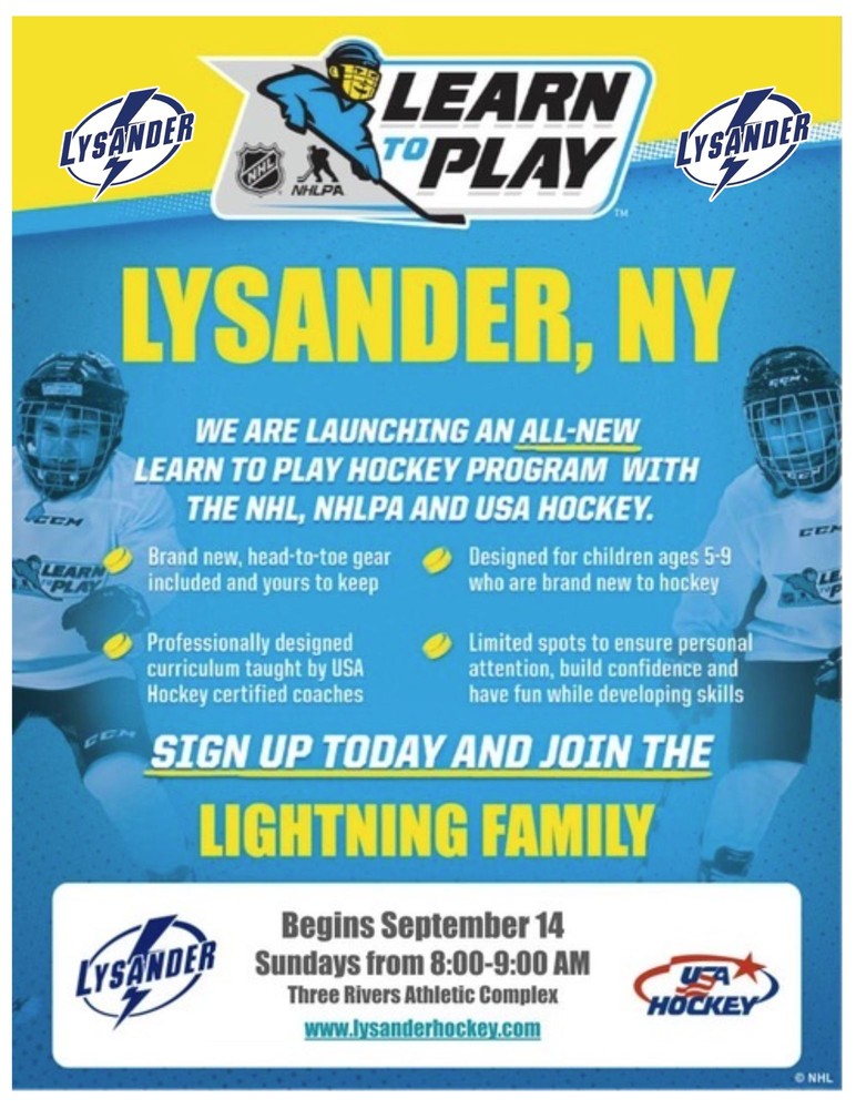 The TRAC is excited to host a new Learn to Play program for this upcoming season! Lysander Youth Hockey Association has partnered with the NHL, NHLPA, and USA Hockey for a new program to introduce the game of hockey the local CNY Community!