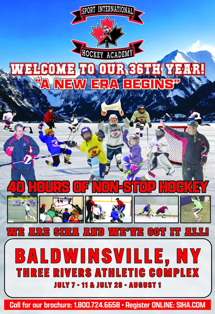 The Sport International Hockey Academy will be offering the Baldwinsville hockey community an exciting week of hockey instruction. We will be coming to the Three Rivers Athletic Complex for a great week of hockey camp. Sport International is entering it's 36th year of operation, and is a nationally recognized organization, offering programs in 30 cities. The Sport International Philosophy is "Total Hockey", with the accent on skill repetition and highly energized "originally designed" drills. Sport International is a fast paced program, perfect for any level of hockey player. Our highly qualified, "charismatic" college/professional staff, will ensure that every student, enjoys a positive learning experience. Each player will receive their personalized take-home video analysis Flash Drive, if selected at registration, for continuous future review. The SIHA "40 Hour Instructional Program", is widely respected, and clearly one of the leading camps in North America.